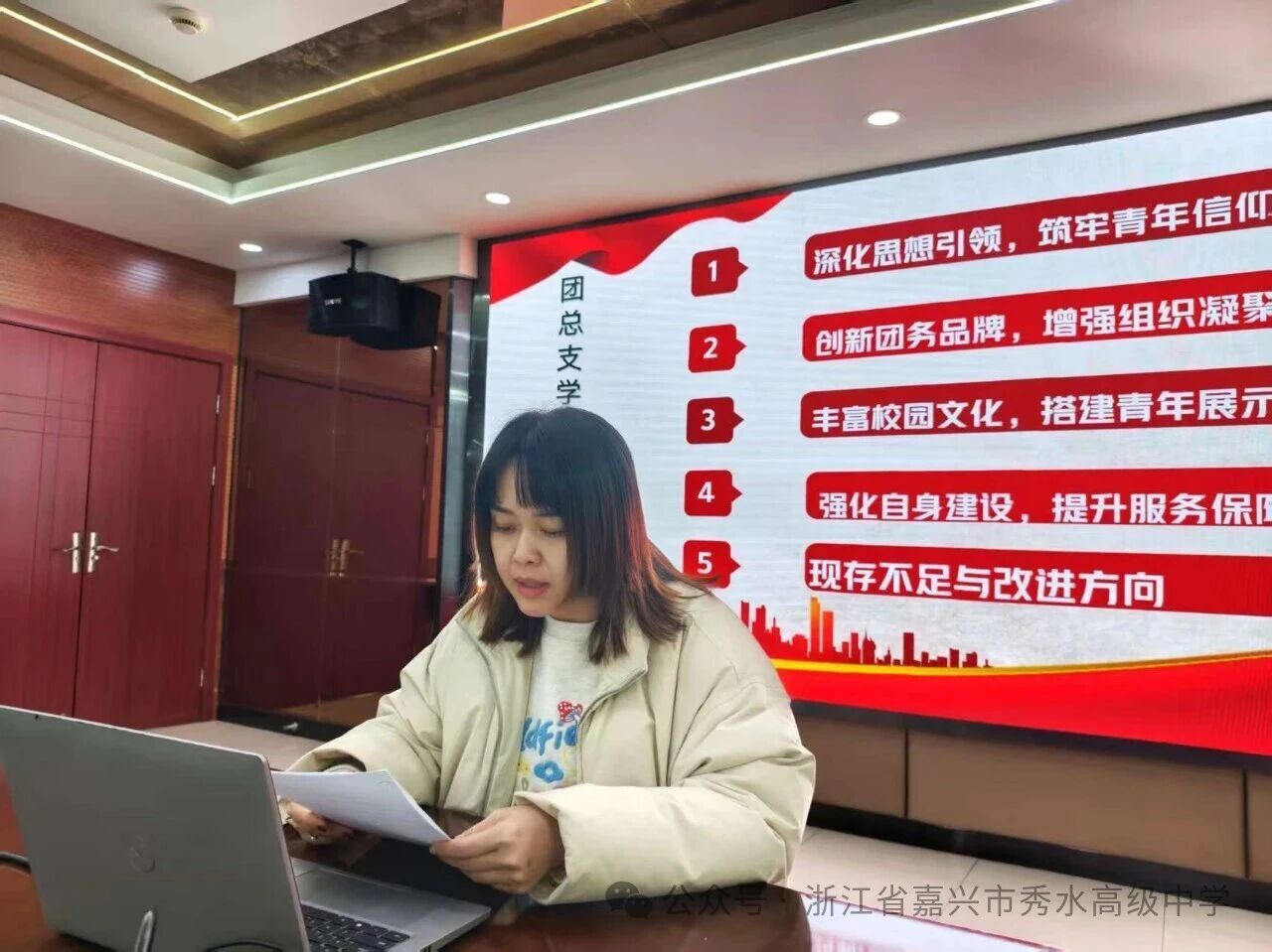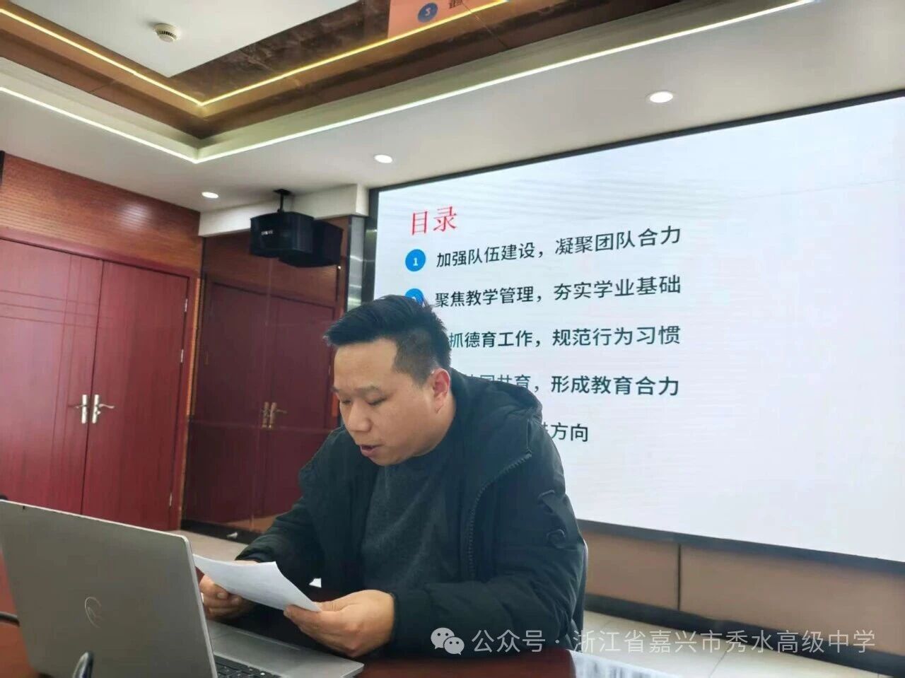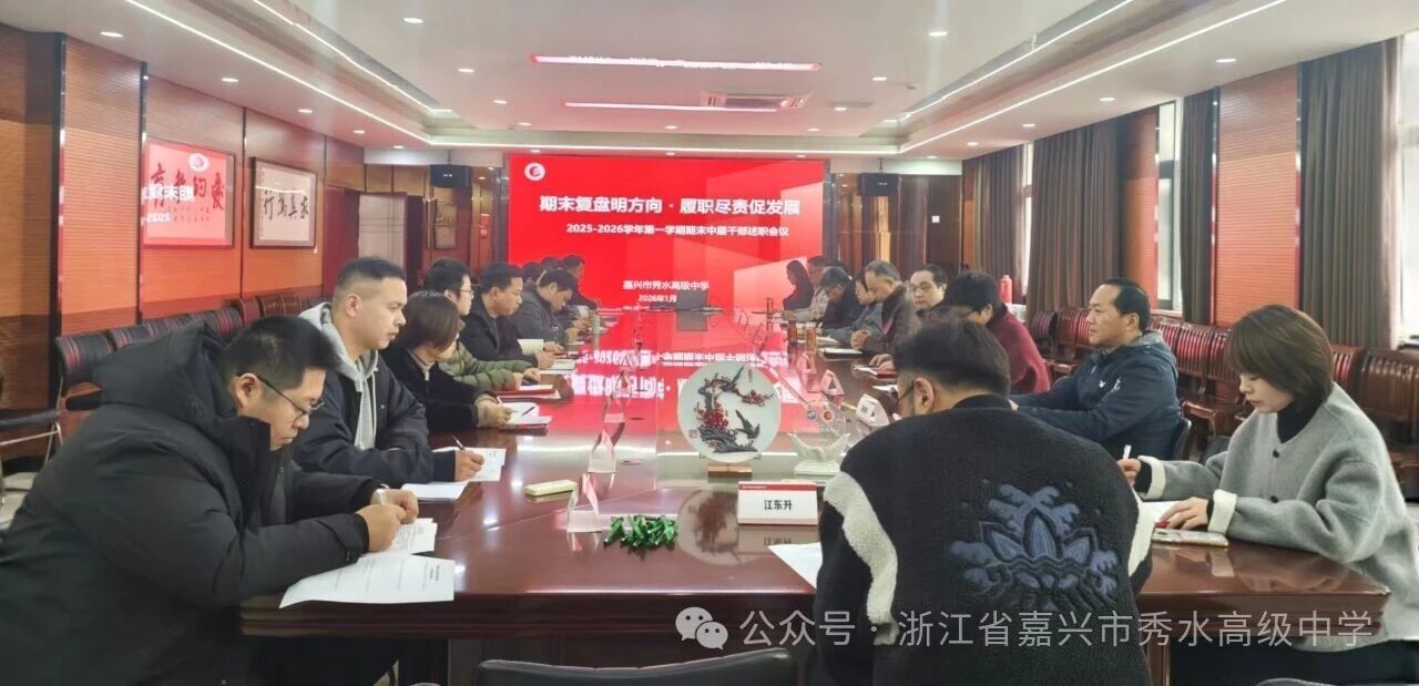 1月29日下午,嘉興市秀水高級中學召開了2025-2026學年第一學期期末中層干部述職會議。會議以“期末復盤明方向・履職盡責促發(fā)展”為主線,全面復盤學期工作,系統(tǒng)謀劃新學期發(fā)展路徑,為新一年學校穩(wěn)步前行筑牢管理根基。校領導班子、全體中層干部參會,副校長左小兵主持會議。