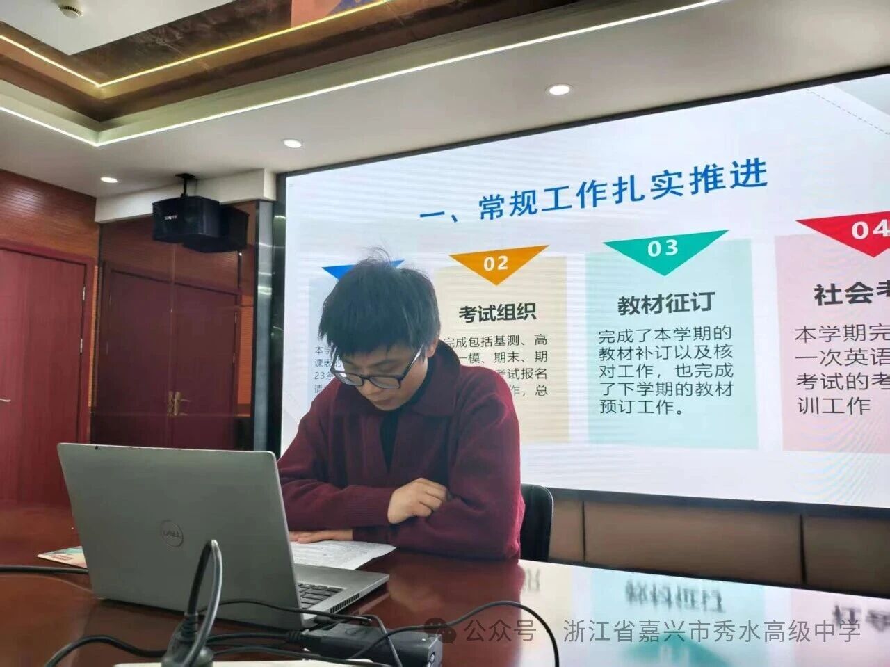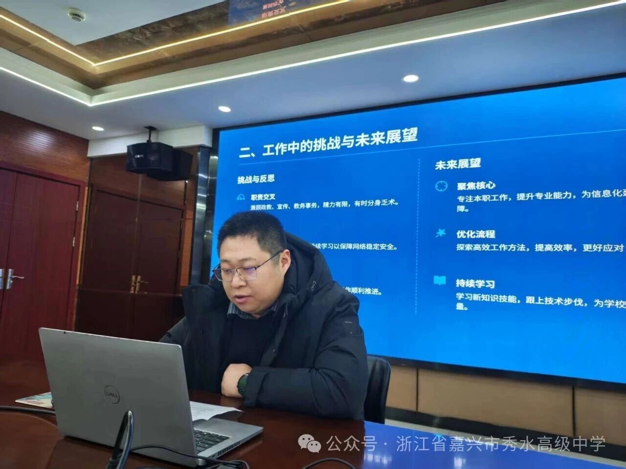 會議按“中層述職、分管點評、校長總結”流程推進。各部門負責人依次登臺,圍繞職責履行與后期計劃進行五分鐘述職。